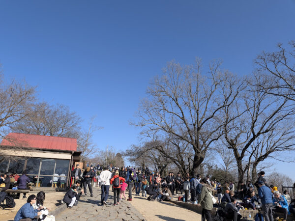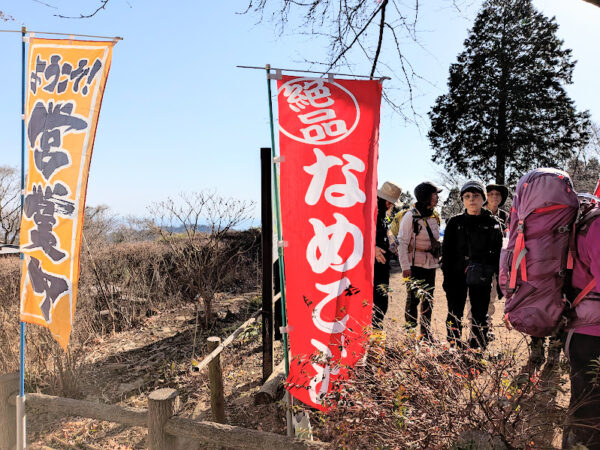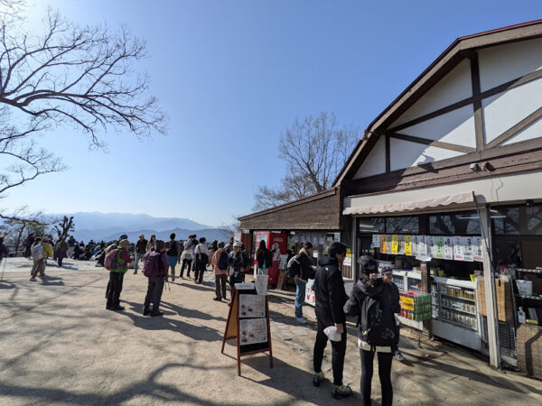 頂上には茶屋があり、広場は登山客で賑わうスポット。