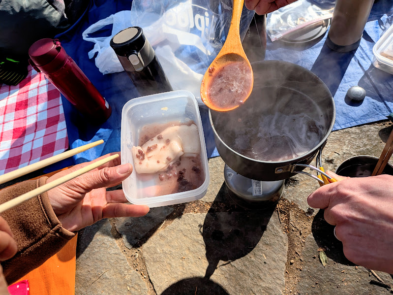 甘い甘いお汁粉ですが、山で食べると格別ですね。