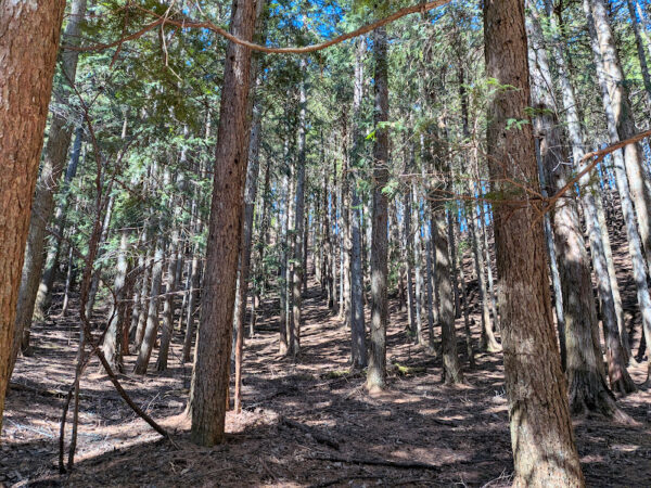 針葉樹の林を進みます。