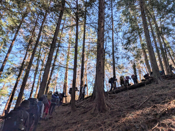 都留アルプスから水道橋ピーヤ、そしてその先の蟻山、富士山展望台へ向かうAコースと、水道橋ピーヤから下るBコースの2グループに分かれます。