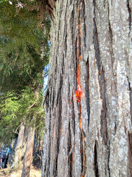 杉の樹液が赤く垂れていました。