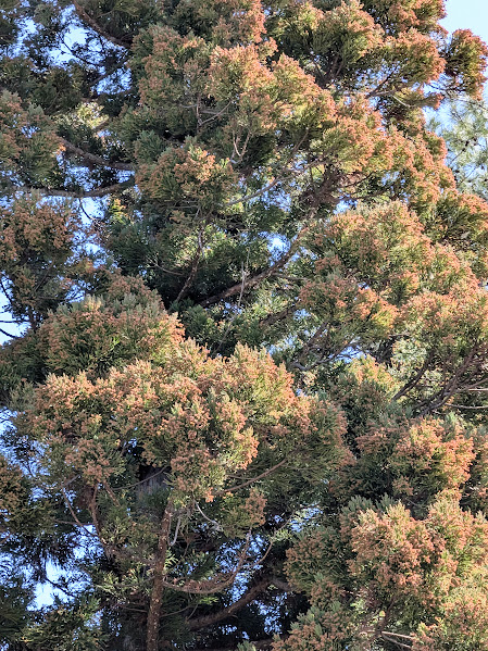 花粉のうをいっぱい付けた一本杉の木。