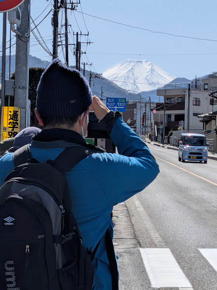 道路の奥に見えた富士山がこの日一番大きく見えた姿でした。