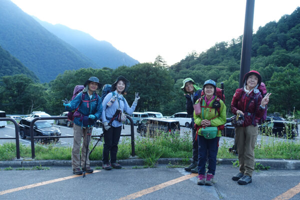 扇沢で笑顔のスタート。これからどんな山旅になるか楽しみです。