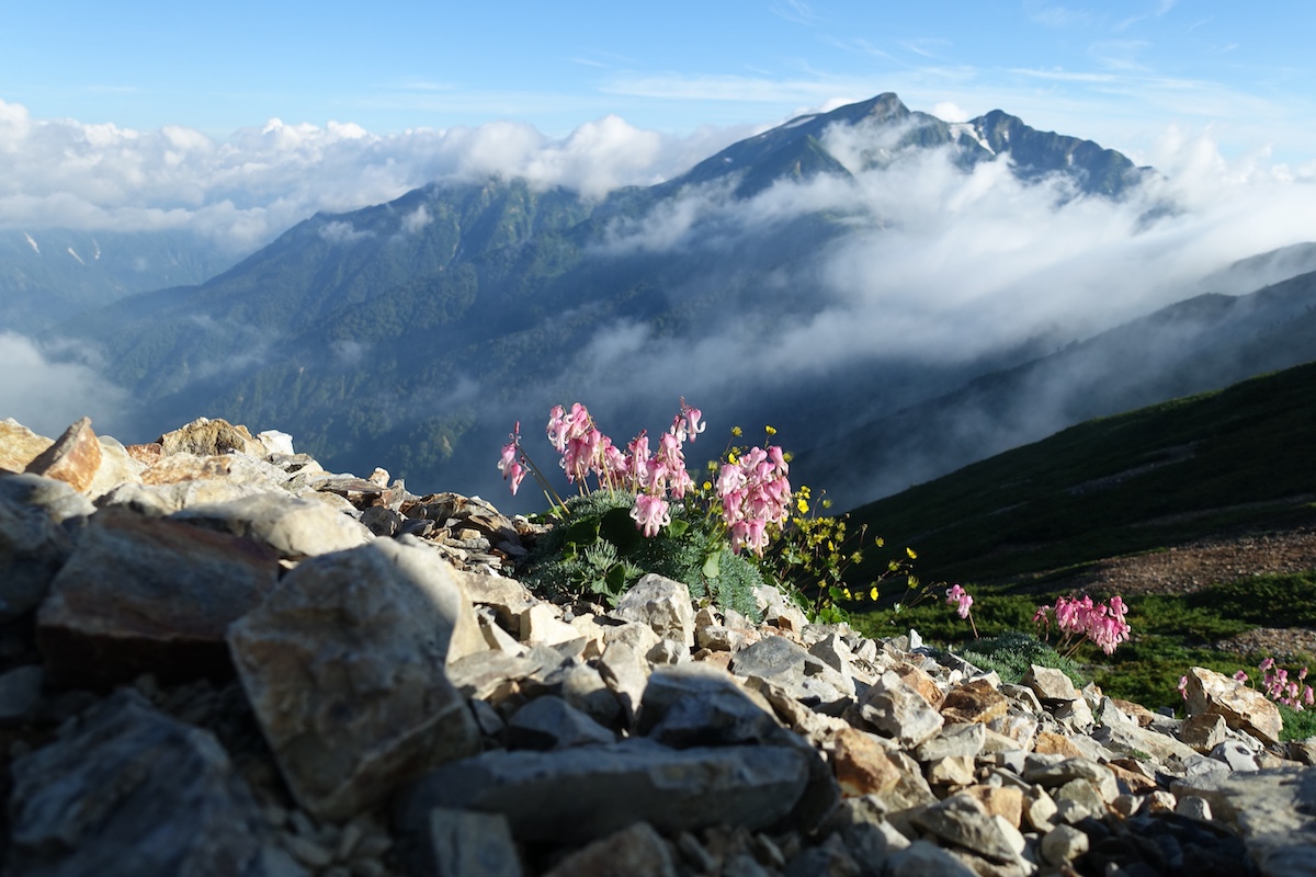 爺ヶ岳から鹿島槍ヶ岳の間は特に高山植物が豊富で、道のあちこちにかわいい花々が咲き乱れていました。
